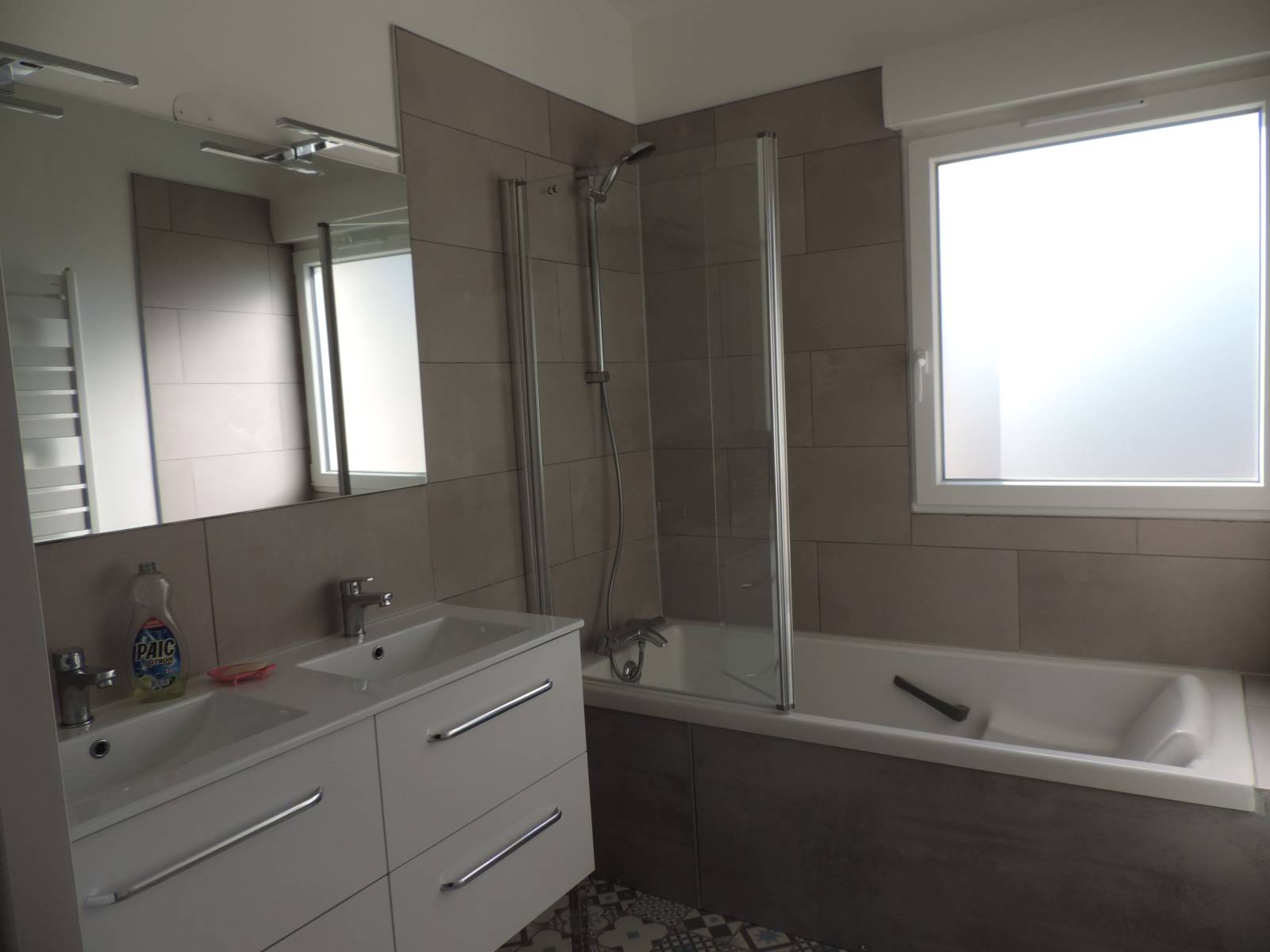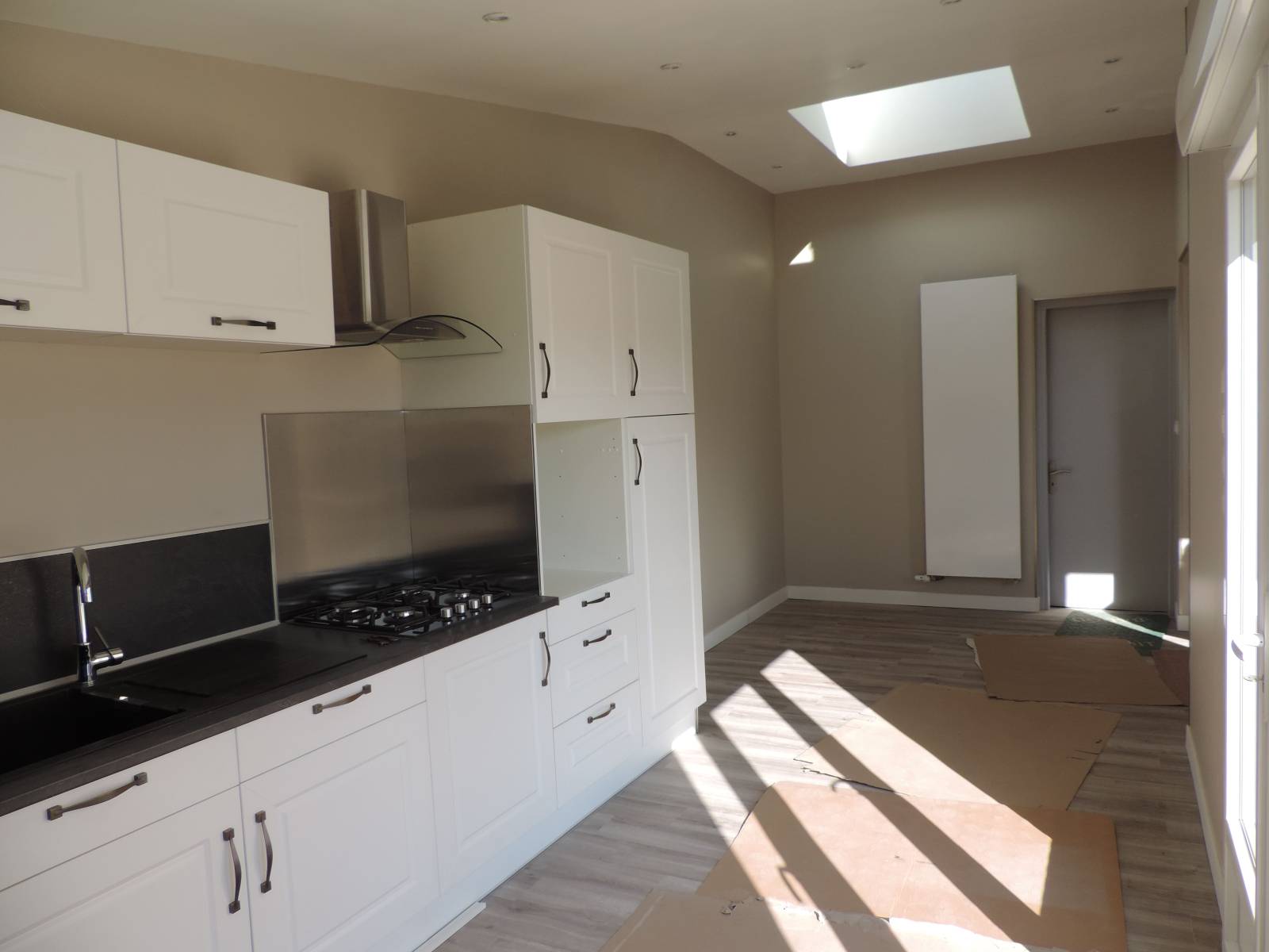 En RDC : Grande cuisine familiale et aménagée, séjour-salon, 1 salle de bains et 1 un WC