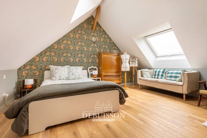 Debuisson Immobilier vous présente, en exclusivité, cette charmante longère de 1924 réhabilitée par architecte offrant 200 m² de surface habitable.