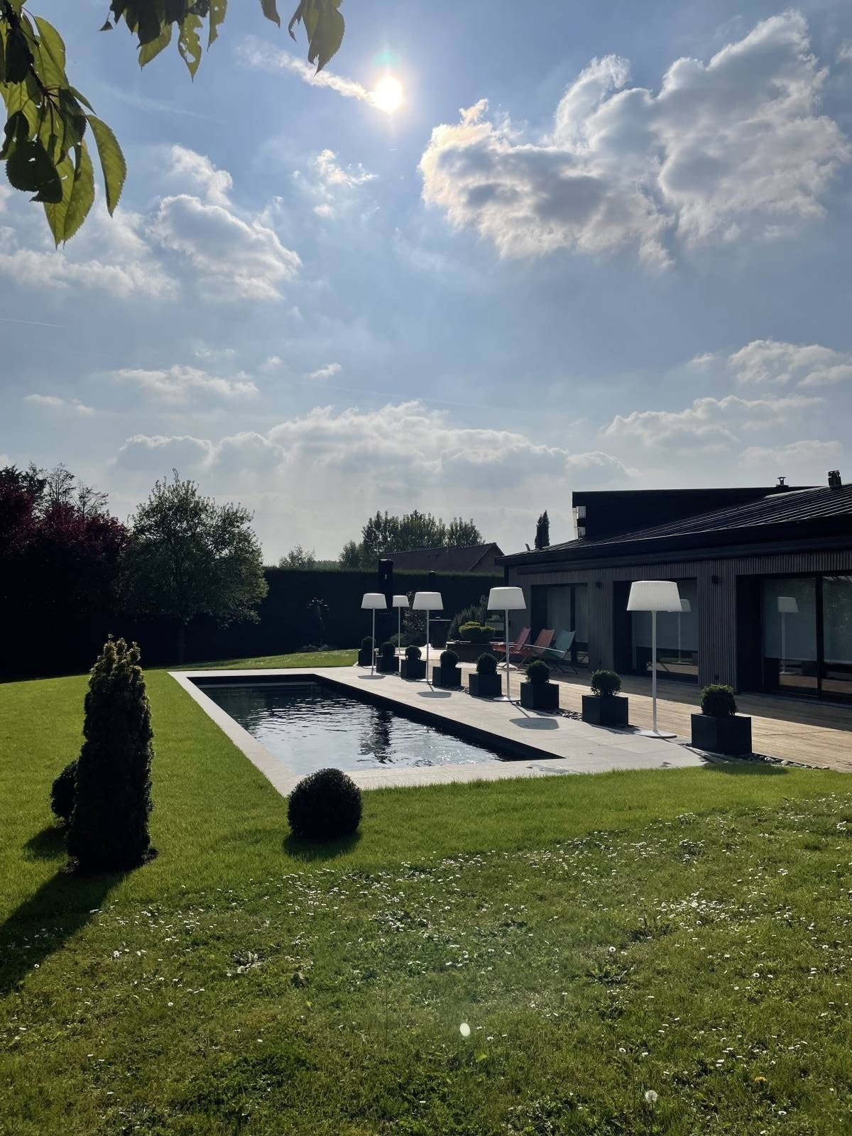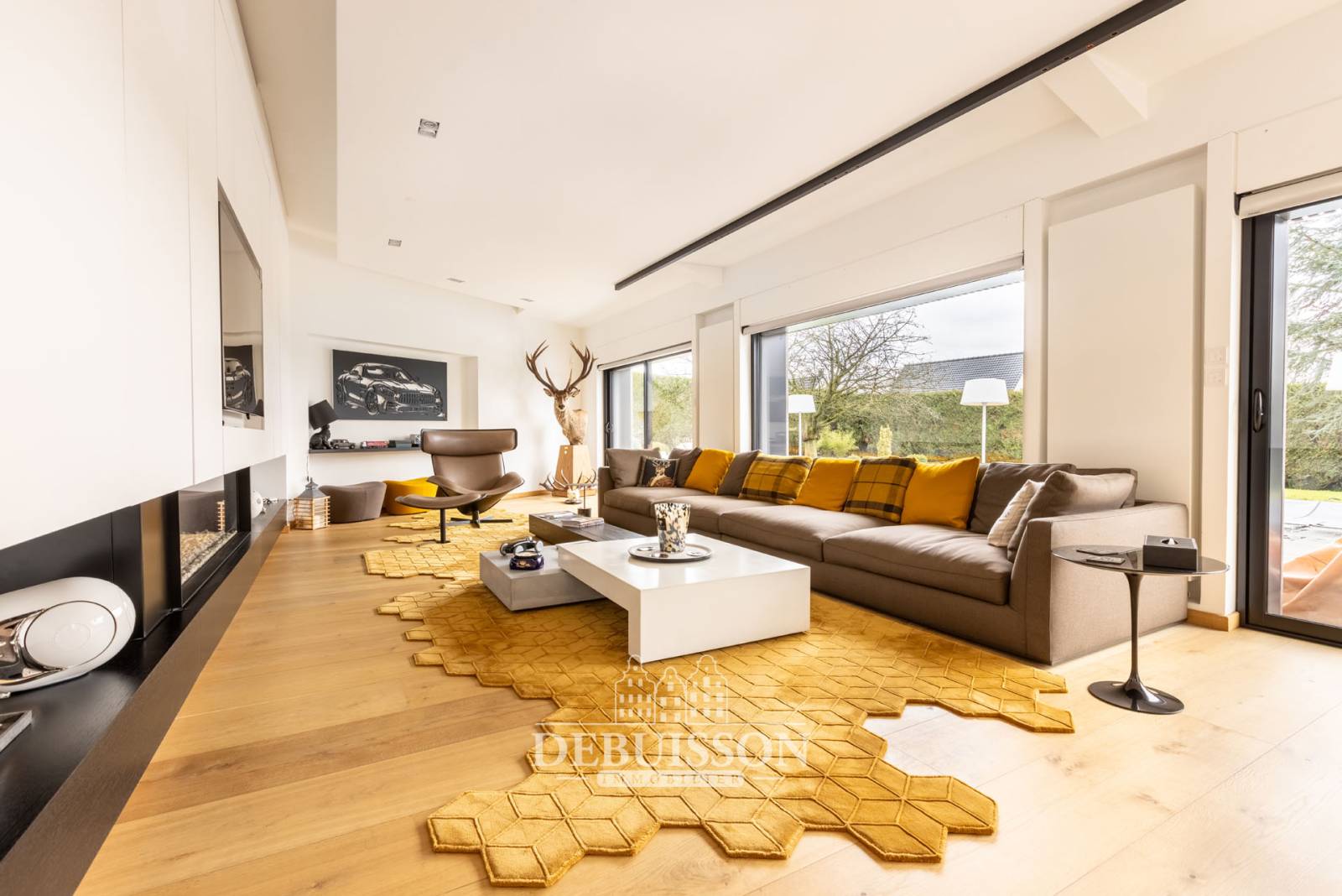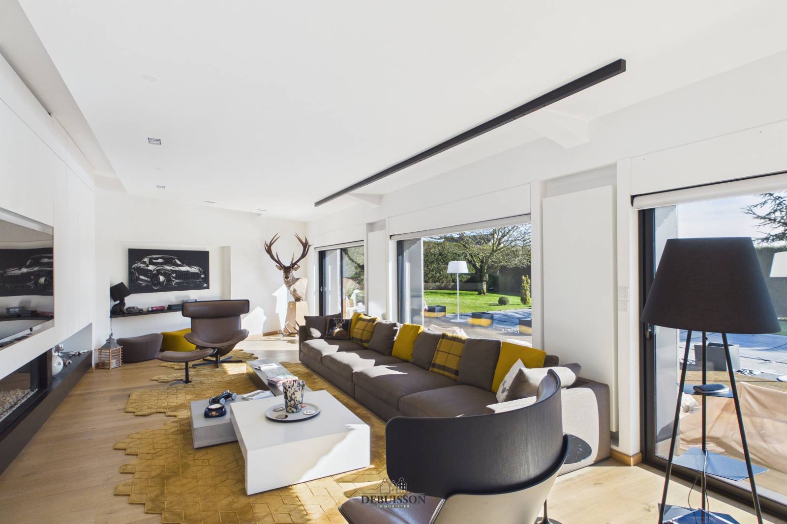 Les volumes sont agréables , elle dispose d'un rez-de-chaussée avec une cuisine moderne tournée vers le jardin et sa terrasse, un espace détente avec son poèle à bois, le bar offre un bow window et une salle-à-manger spacieuse, un salon baigné de lumière donnant sur la terrasse et la piscine chauffée, une masterbedroom avec ses placards de rangement donnant sur une nouvelle terrasse exposée au soleil levant, une salle de bains avec doubles vasques en corian, une baignoire posée dans le bow window avec vue sur le jardin d'agrément, une vaste douche et un dressing.