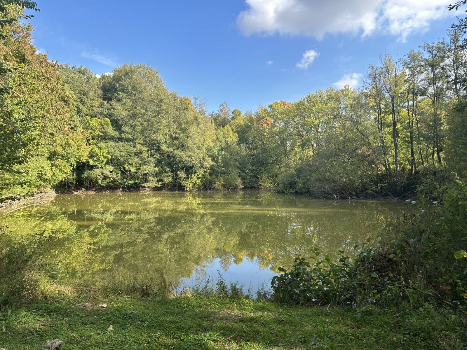 Un écrin de biodiversité sur 7 hectares Plongez dans un domaine boisé de 7 hectares, peuplé d’essences variées (frênes, charmes, sycomores, chênes, peupliers…). Deux plans d’eau, anciens bassins de carrière de grès, y abritent une faune protégée : oies bernaches, grenouilles vertes, carpes de grande taille… La chasse y est également possible, avec la présence de chevreuils, lièvres et perdreaux.