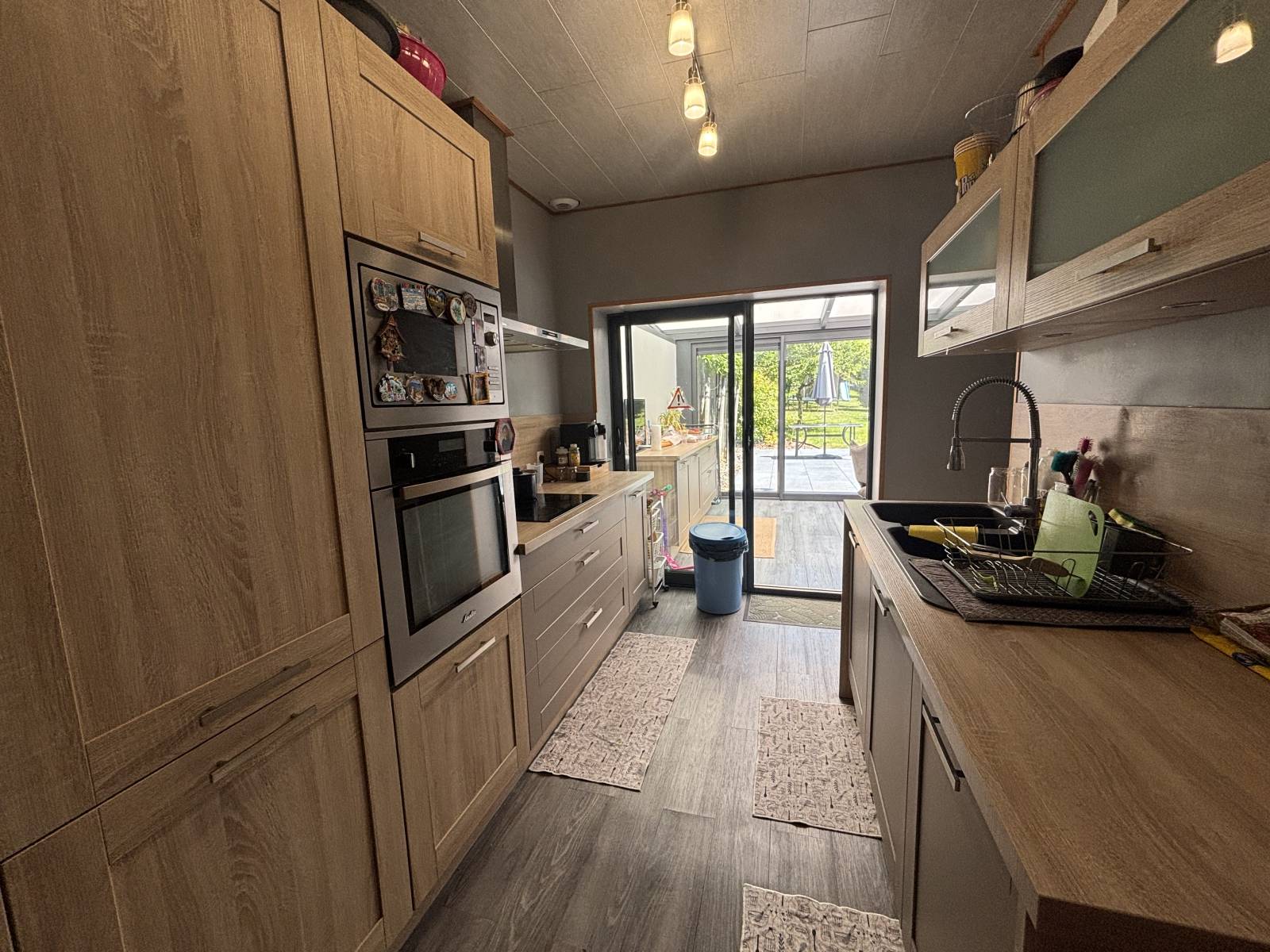 La maison dispose en RDC d'une entrée, un beau séjour-salon donnant sur le jardin avec terrasse, une cuisine équipée ouvrant sur l'espace repas-véranda, une chambre et une salle d'eau avec wc