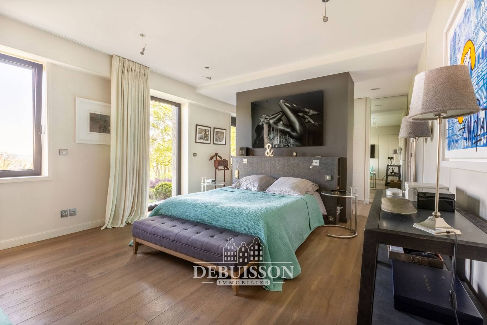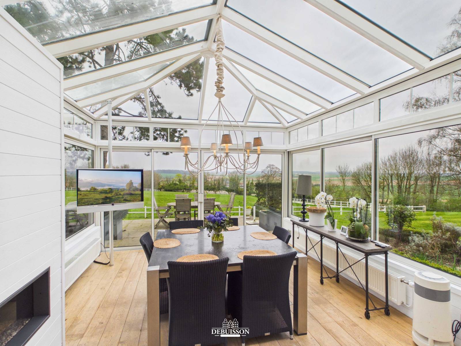 Vous découvrirez dès l' entrée un hall majestueux avec son escalier imposant, une cuisine moderne donnant sur l'espace véranda qui domine la campagne environnante, l'espace de salon-salle-à-manger de 81 m² offre une cheminée ancienne, la chambre parentale en rez de jardin avec sa salle de bains et son dressing donne sur la campagne , une chambre enfant attenante et un grand bureau, qui peut s'isoler de la maison principale.