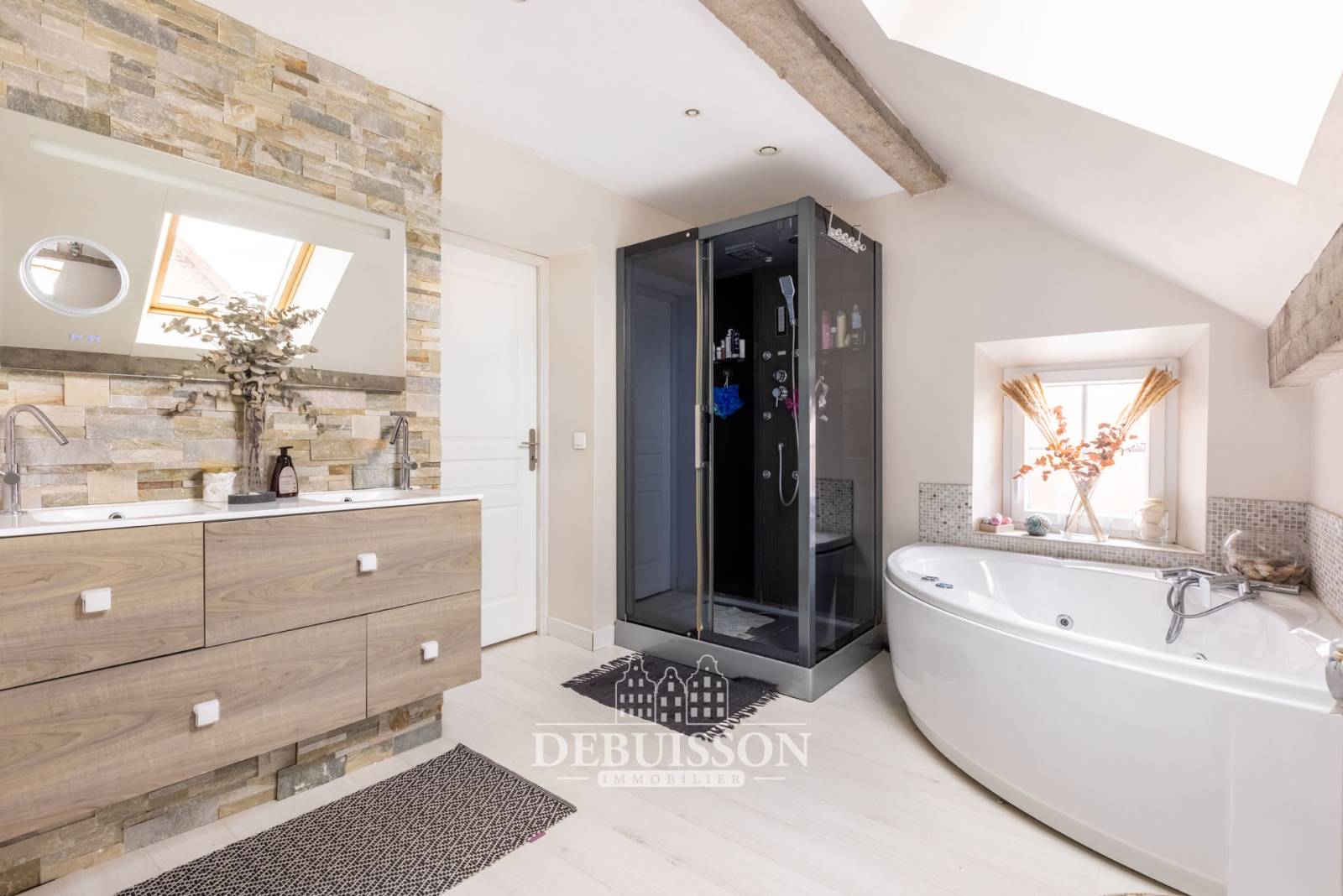 A l'étage un palier dessert 2 chambres de 10 et 14 m² ainsi qu'une vaste salle d'eau de 13 m².